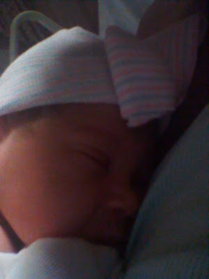 At approximately 9:20pm, I was told I could start pushing. My little JOE made her debut at 9:32pm. She came out screaming and I knew she'd be ok. J cut the cord and per my instructions, stayed with JOE from there on out.